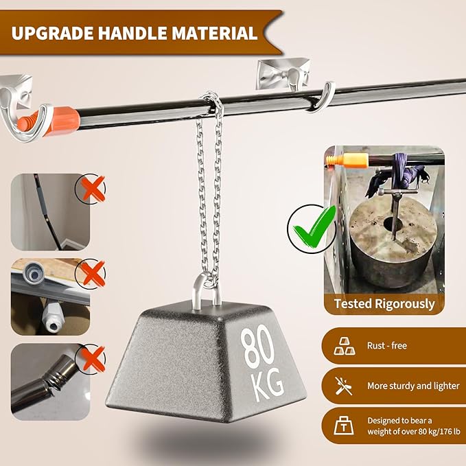 - γπ‘οΈ Reusable & Durable and easy to cleanγ4 adjustable handle sections (up to 58") made of reinforced stainless steel (200+ lbs pressure tested) with anti-slip grip. High-quality rubber and durable metal ensure that the carpet rake teeth, made of various materials, can be used repeatedly without wearing out. The soft rubber bristles are both waterproof and quick-drying, making them very easy to clean.