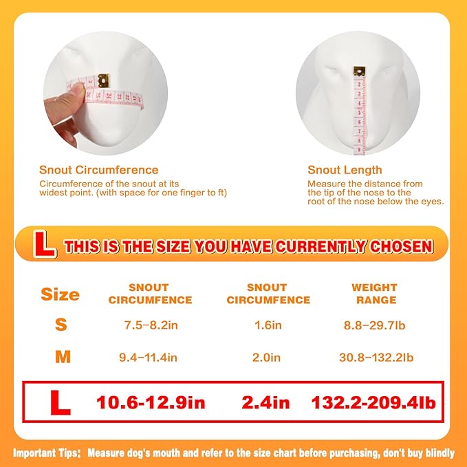 - 【Size Option: L (Circumference: 10.6''-12.9'' in)】Size S is suitable for large dogs, such as Beagle and Corgi etc. Please make sure to measure the dog's snout before purchase and refer to the size chart to choose the right size. If you have any questions about product quality or size, please feel free to contact us.