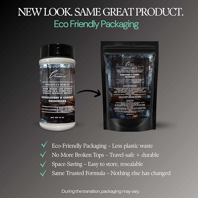 Obsidian Birch Carpet Freshener Powder: Powerful Odor Eliminator for Home, Upholstery Deodorizer, Carpet Deodorizer, Pet Urine - Birch & Black Pepper Fragrance