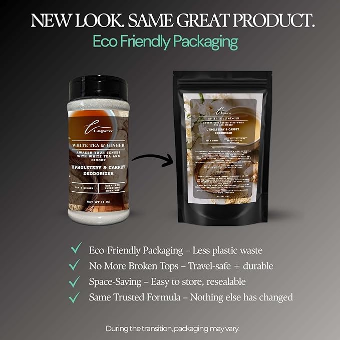 White Tea & Ginger Carpet Freshener Powder: Powerful Odor Eliminator for Home, Upholstery Deodorizer, Carpet Deodorizer, Pet Urine, Cat Litter Box - White Tea & Ginger Fragrance.