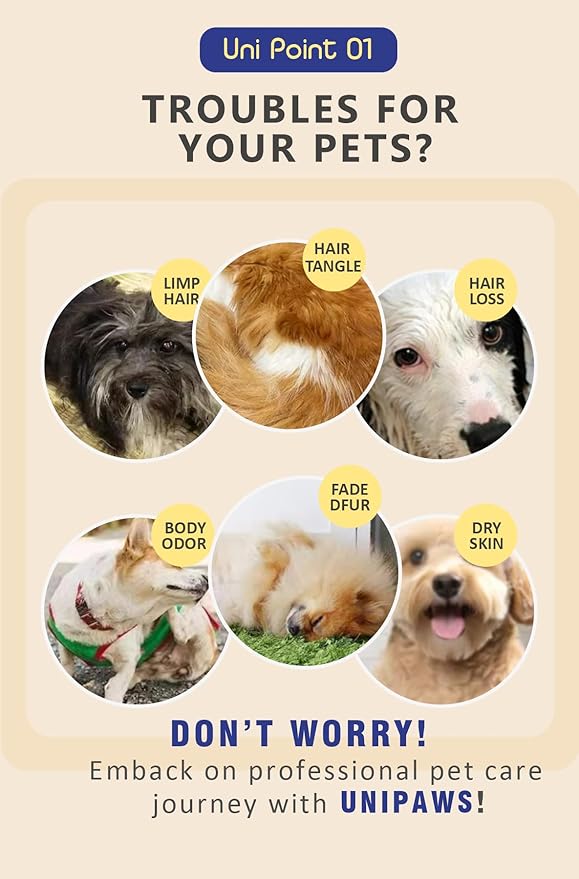 Unipaws Biotin Shampoo & Conditioner Set for Long-Haired Dog – Detangling, Deshedding, Thicking Hair for Senzitive Skin Healthy, Lustrous Fur – Medicated & EWG Green, Made in Korea, 2×16.9 Fl Oz