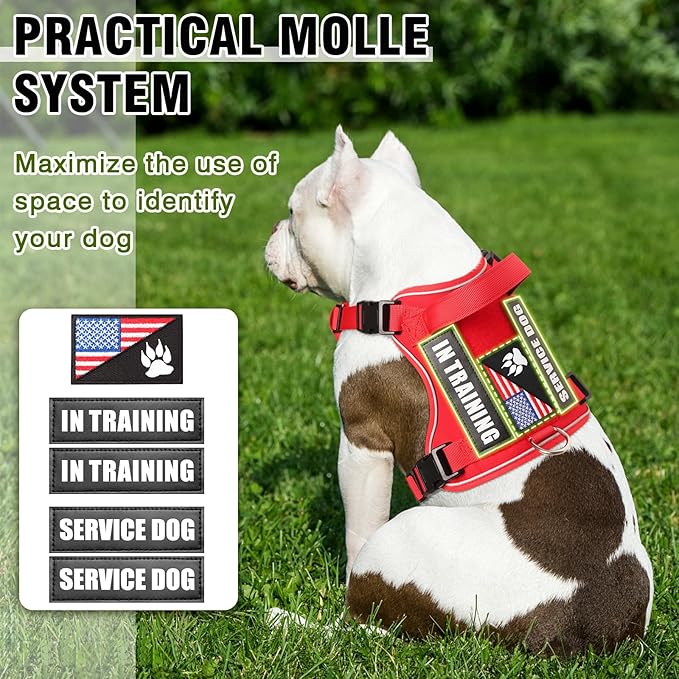 - 【MOLLE System & 5 Velcro Patches】: The package contains a WINSEE dog vest harness and 5 pieces of dog patches. This Service dog vest features molle system equipped on both sides. You can attach the patches such as “ “Service dog”, “in training” and 1 dog paw patch when walking or training the dog outside.