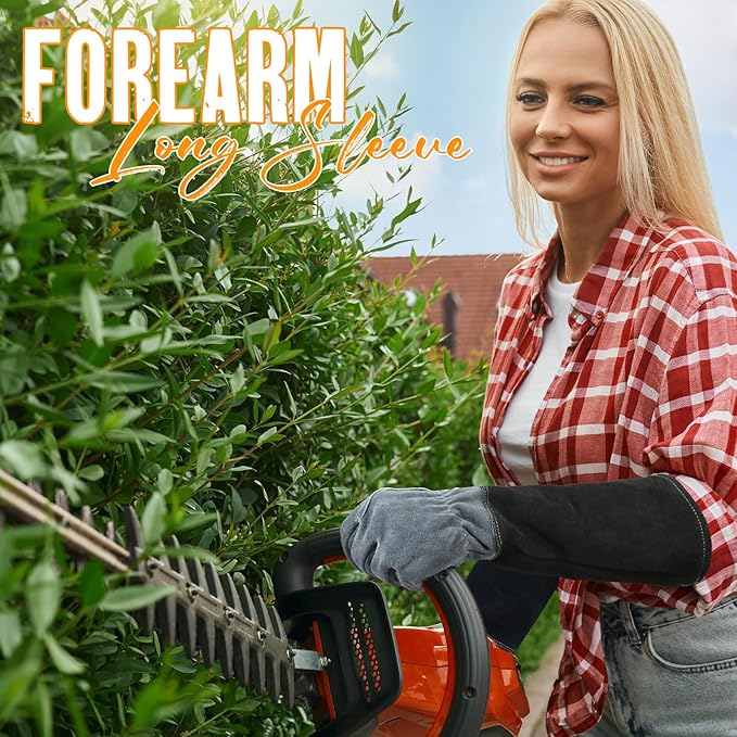 - Forearm Protection & Snug Fit: Feature cowhide leather long sleeves that extend up to forearms that protect them from cuts and scratches, keeping your hands and forearms safe and comfortable. Elastic wrist closure offers a snug and comfortable fit to keep the gloves securely on your hands. Perfect for tasks that require reaching into dense foliage or handling thorny plants