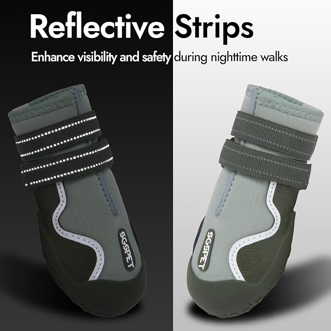 - VERSATILE PROTECTION: Engineered for Ultimate Paw Safety-Our durable dog boots are designed to tackle every season, providing reliable protection in snow, rain, and scorching hot pavement. Crafted with premium waterproof materials and enhanced with 360° reflective strips, these boots ensure your pet stays safe, comfortable, and visible in all conditions. Whether it's a winter wonderland or a summer stroll, your furry friend is ready for any adventure!