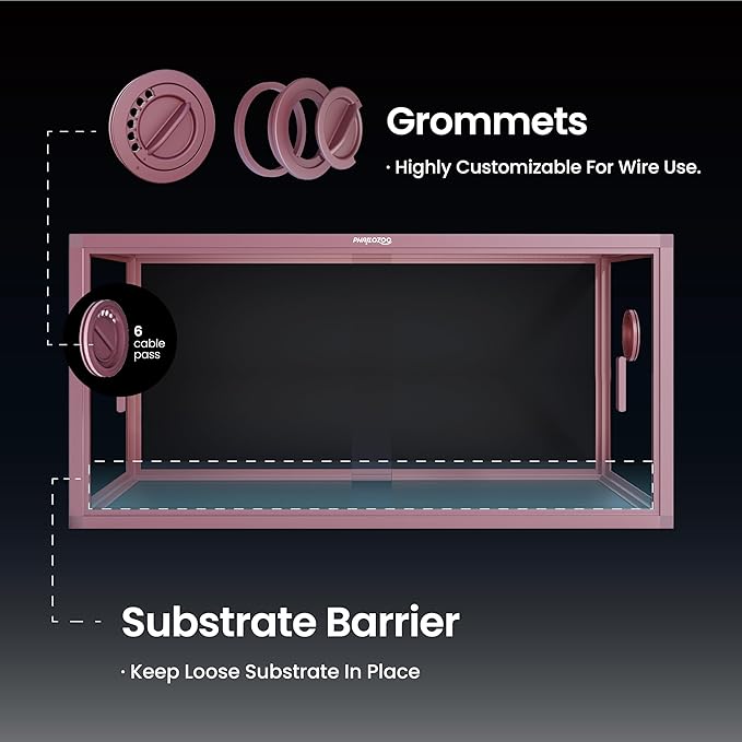 - 【Easy Maintenance】Front opening reptile terrarium with door handles included for easy cleaning & feeding. No more suction problems or fingerprints all over the doors. Substrate barrier to keep substrate in place.