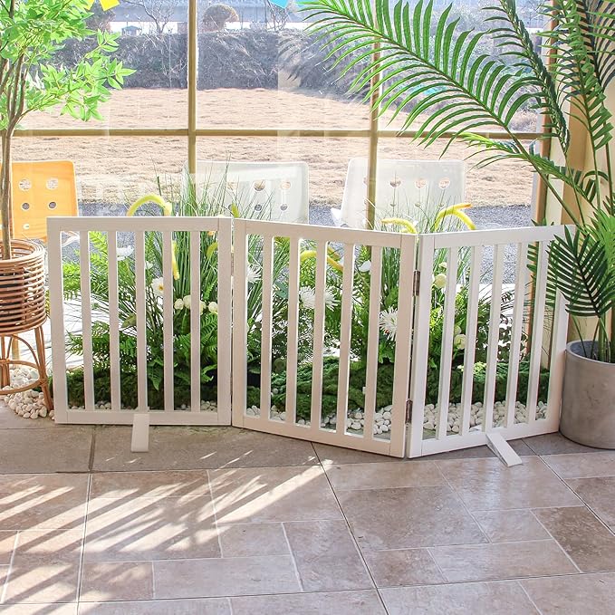 ZJSF Freestanding Indoor Dog Gate for House Foldable Wood White Puppy Gate for Doorways Pet Gate for Stairs Extra Wide Pet Fence 24" Height 3 Panels