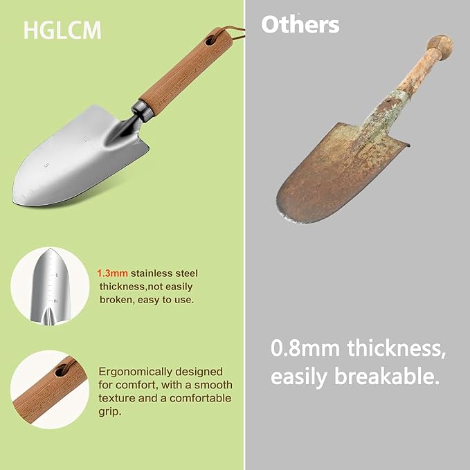 - Sturdy and Stainless Steel Garden Set: Made of Stainless Steel, this stainless steel gardening tools is durable and rust-proof. Moreover, with stable material like this, these gardening tools are hardly deformed