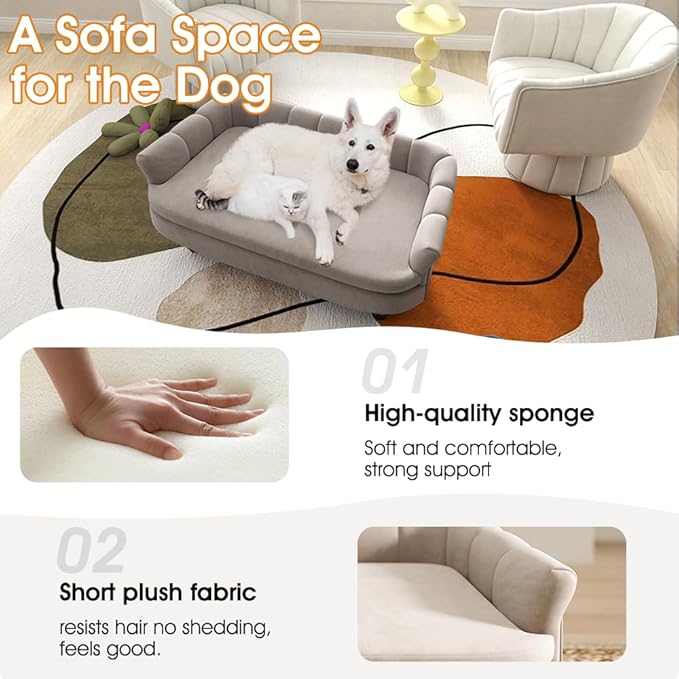 - Sturdy and Durable Construction – Crafted with a solid wood frame and high-quality upholstery, this pet couch is built to withstand daily use. The strong, non-slip wooden legs elevate the bed to keep pets off cold floors while ensuring stability and durability.