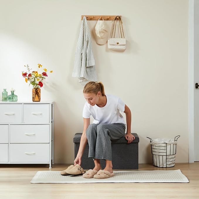 - 【Comfortable and Durable】The storage bench is made of high-quality linen fabric, the fabric is comfortable and breathable, and the feel is full and soft. The interior is filled with high-density foam to maintain good support while ensuring comfort. Strong and durable, so that your comfort experience lasting.