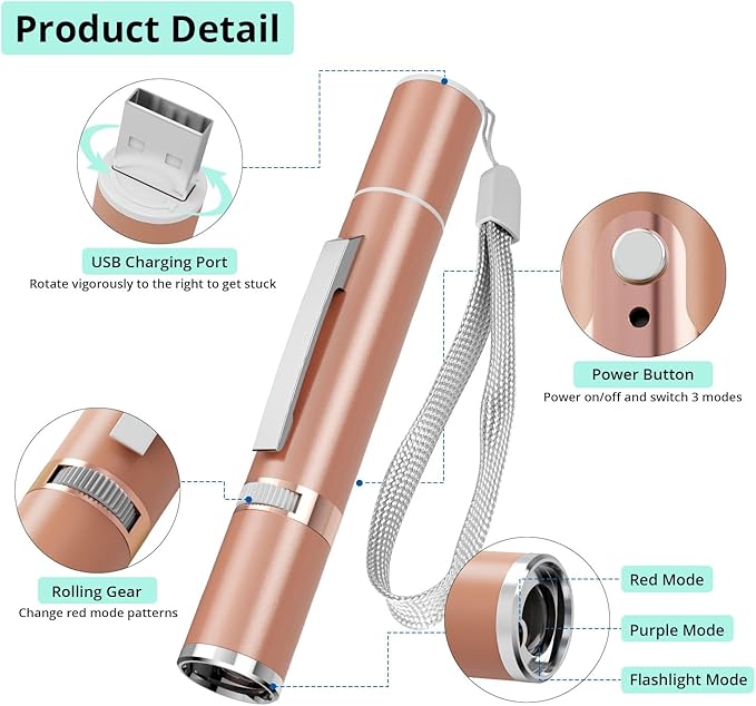 - Multiple Function: The cat toy can also make you a presenter. It is very bright. Plus, you can turn on the switch with a single press. White mode can glow in the dark; Purple mode can detect money.
