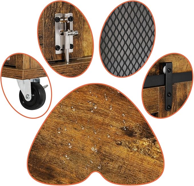 - 【Modern Dog Kennel】Modern Grey Dog crate furniture with sliding barn doors, suitable for any home decoration style. 5 wheels at the bottom, 2 can be fixed and can be moved anywhere you want
