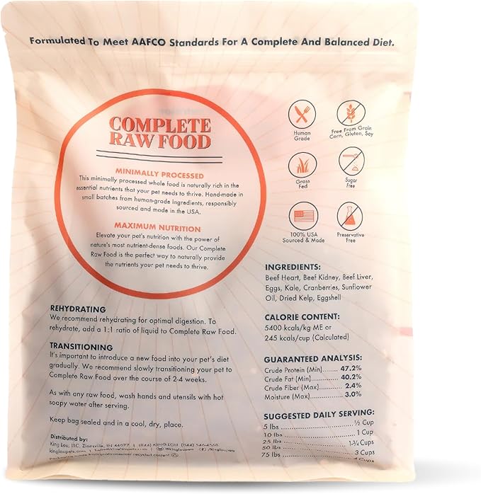 King Lou Pets - Human Grade Raw Food for Dogs and Cats - Complete Meal for Pets - Freeze Dried Beef Recipe - 14oz