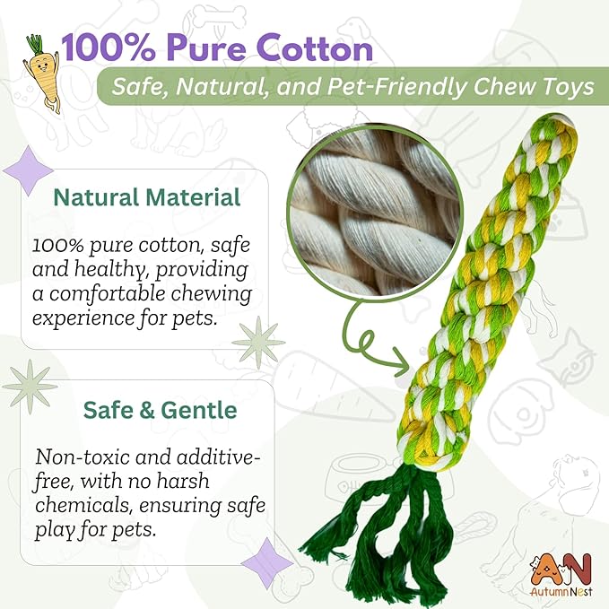 - Multi-Pet Suitable: The AutumnNest 3PCS Woven Carrot Pet Rope Toys are designed for dogs, cats, rabbits, and other small pets, making them ideal for a variety of animals, from puppies to adult pets.