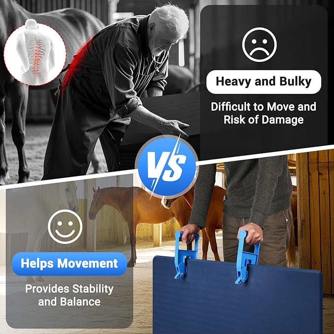 - [Compact and Portable]This outdoor mat grip is highly practical. You can easily hang it on hooks in the barn or stable, allowing for convenient access anytime. It's also perfect for storing in a horse trailer for added convenience and versatility.