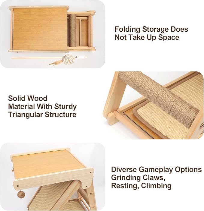 - Integrated Molding:BluGun Platform Folding Cat Scratching Board does not require installation, one-piece molding does not take up space, solid triangular structure, can be stretched, claw, sleep, play a variety of ways to play to release the cat's natural instincts;