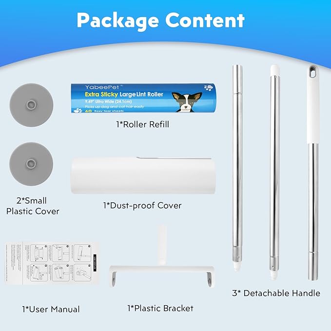 - Easy to Use & Extra Sticky Roller: Easy Tear-off design hair remove roller allows you to peel off the used sheet and replace it with a new one effortless. Enhanced stickiness of the pet lint roller sheets makes it easier to remove pet hair and debris on couch, bed, carpet and other surfaces