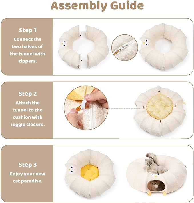 - Versatility: The innovative 2-in-1 cat tunnel bed allows your pet to play and rest at the same time. Designed with the excitement of a zippered play tunnel and the serenity of a cozy nap.