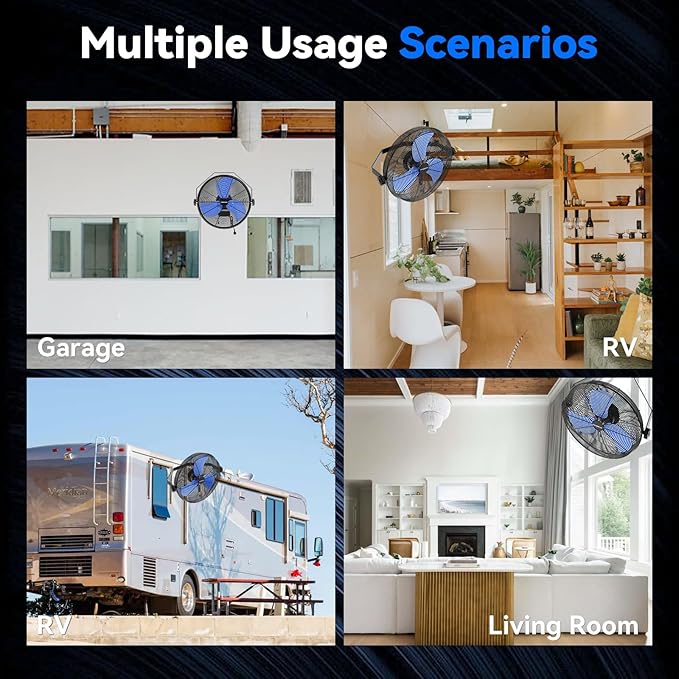 - 𝐇𝐢𝐠𝐡 𝐕𝐞𝐥𝐨𝐜𝐢𝐭𝐲 𝐀𝐢𝐫 𝐅𝐥𝐨𝐰 - Equipped with 3 adjustable wind speeds, low (3500CFM), medium (4200CFM) and high (4580 CFM), this wall fan utilizes the raw power of the pure copper motor to provide hurricane-like airflow to perfect for outdoor patio, garage, warehouse, humidity environments, dust