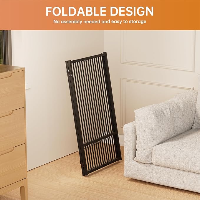- [Versatile Sizes]: Our pet dog gate is available in 24-inch and 32-inch heights, perfect for puppies, small and medium dogs pets. Multi-choice of 2 panles, 4 panles and 6 panles, suitable for stairs, kitchens, bedroom doors, corridors and other indoor and outdoor forbidden areas.
