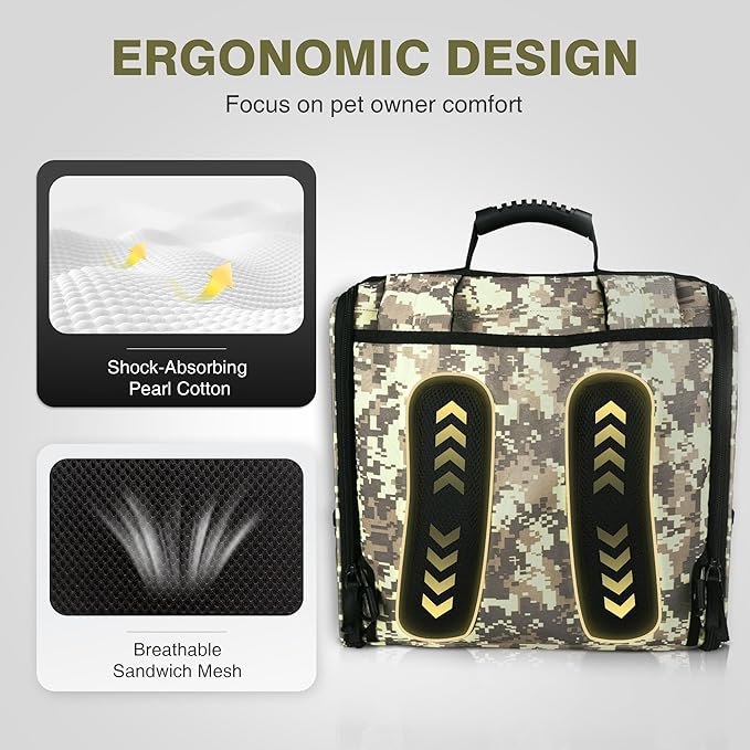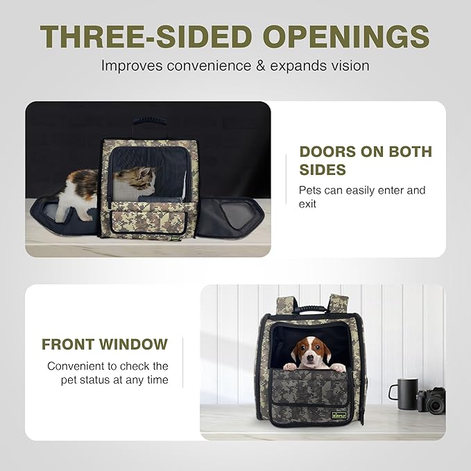 Collapsible Cat Backpack Carrier, Dog Backpack Carrier for Small Dogs Cats Up to 12 Lbs, Three-Sided Breathable Pet Backpack with Soft Padded, Designed for Outdoor and Travel Use, Camo
