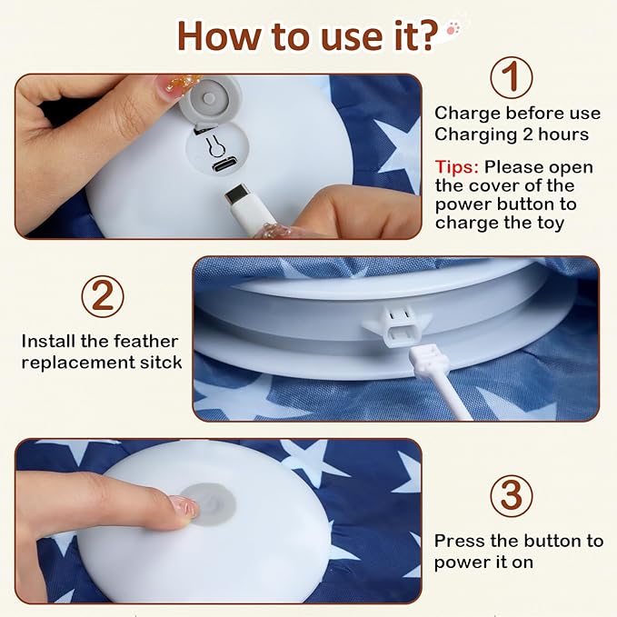 - Three speed modes - slow, fast, and interactiveβthis feather cat toy adapts to a variety of cat play style and suitable for both solo and group play. Hight support this cat toys for bored indoor adult cats