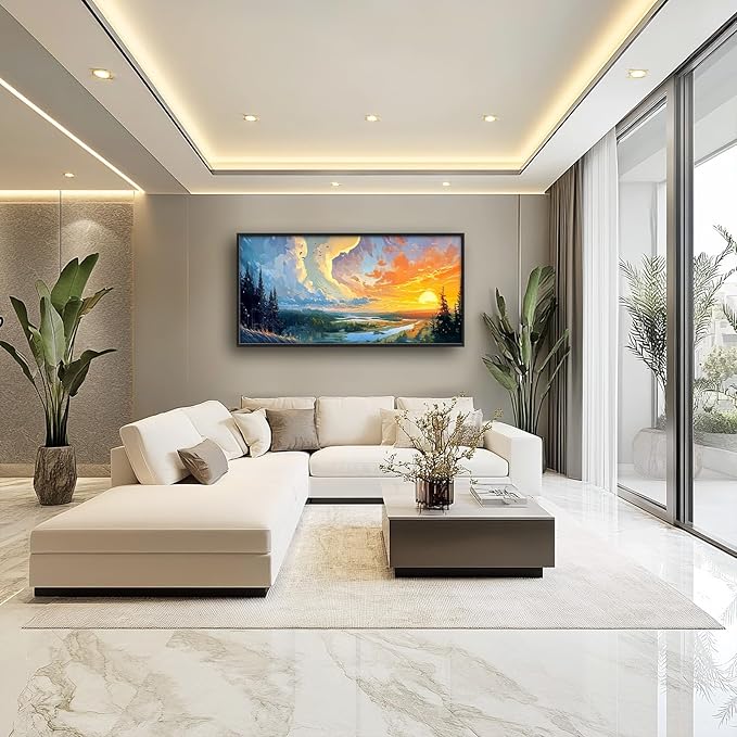 Framed Large Sunrise Wall Art for Living Room, Oversized Sunrise Wall Decor Forest Lake Landscape Canvas Print Natural Picture Home Decoration for Bedroom Living Room Office 60"x30"