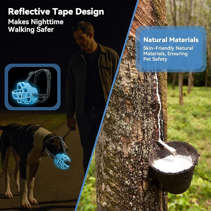 - Eco-Friendly Material for Safety and Durability: Our Dog Muzzle for Large Dogs is Crafted from Non-toxic, Environmentally Friendly TPR Silicone. This Lightweight yet Durable Material Is Odorless, Soft to the Touch, And Sturdy Enough to Resist Deformation, Ensuring Long-Lasting Use While Prioritizing Your Petβs Safety