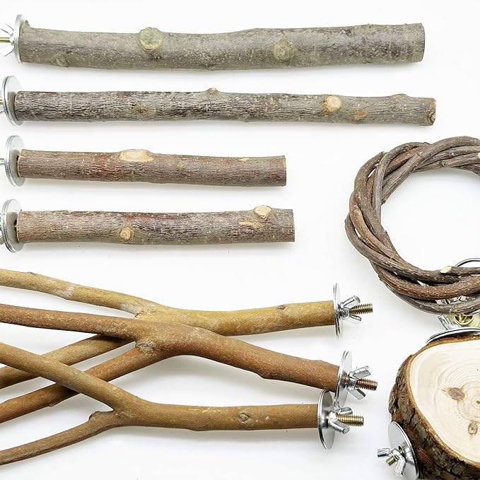 - Multifunctional Bird Toys: Provide a habitat for parrots that provides a naturally uneven surface. They are designed to give your bird's feet a rest. Provides an ideal elevated spot for your bird to swing, chew and climb. Suitable for chewing and nibbling.