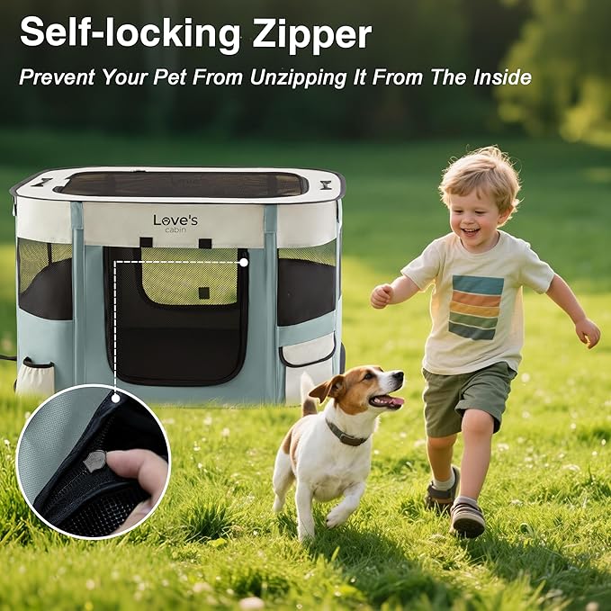 Love's cabin Pet Puppy Dog Playpen, Medium Dog Tent Crates Cage Indoor/Outdoor, Portable Exercise Playpen for Cat, Foldable Pop Up Dog Kennel Playpen with Carring Case (M, Gray Green)