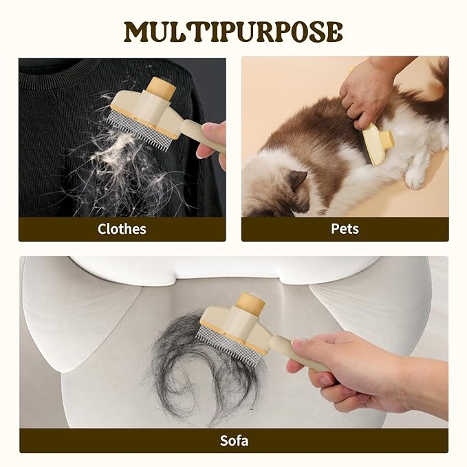 - 【Multi-function Cleaning Tool】 Suitable for all small and large cats and dogs! It also works great to remove hair from furniture, clothes, and small spaces, making it a must-have for pet owners. You just have to simply push the button and the hair will be super simple removed from the cat hair brush