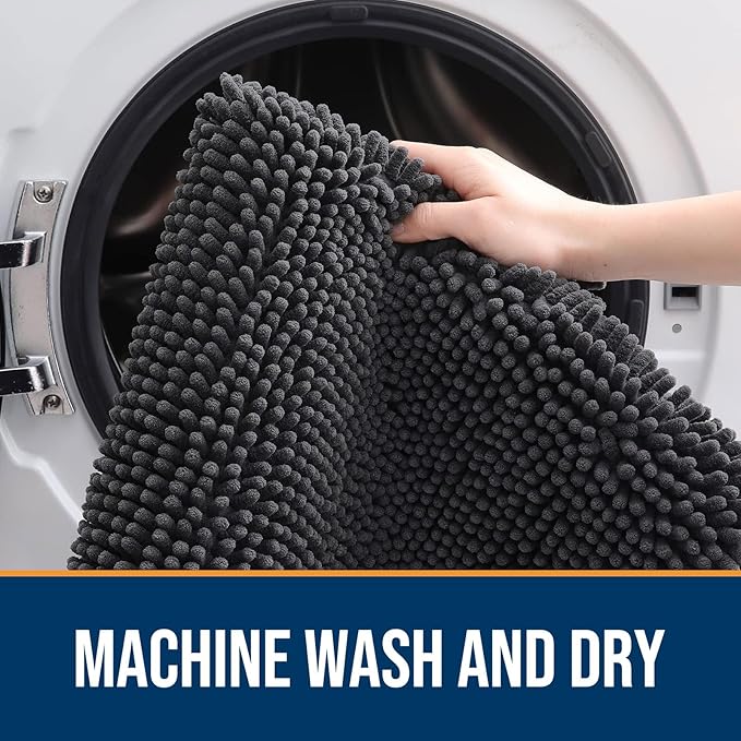 - [LOW PROFILE AND EASY CARE] OLANLY's Chenille Dog Door Mat boasts a slim 1-inch profile, offering a sleek and streamlined appearance. The thoughtful design ensures your doors won't get stuck, and the mat stays securely in place. Cleaning is a breeze β simply shake off any dirt or debris, or toss it in the washing machine for a deeper clean. It dries quickly, so you can be sure it's ready to use again in no time.