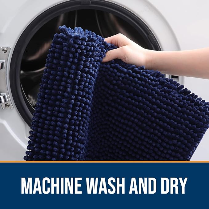 OLANLY Dog Door Mat Set 4-Piece 36x24, Absorbs Moisture and Dirt, Absorbent Non-Slip Washable Doormat, Quick Dry Chenille Mud Mat for Dogs, Entry Indoor Entryway Carpet for Inside Floor, Navy Blue