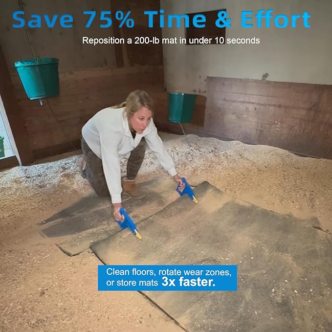- Multi-use for Barns, Gyms & More: One tool, with endless uses. Relocate rubber mats in horse stalls, tack rooms, home gyms, trailers, or farm floors easily. Ideal for ranchers, fitness owners, or anyone managing heavy-duty flooring.