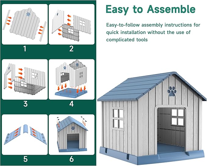 - Superior PP Material: Crafted from high-quality PP material, this doghouse is waterproof. This ensures a clean, dry, and safe living environment for your furry friends all year round.