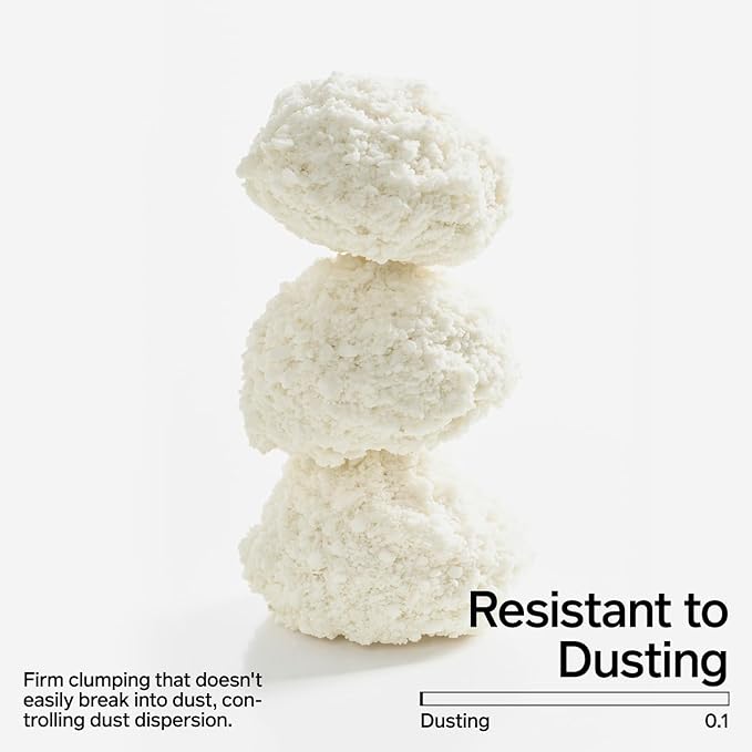 - 【Little Dusting】With high particle hardness, dust is controlled, as the tightly compacted clumping would not easily break into powder.