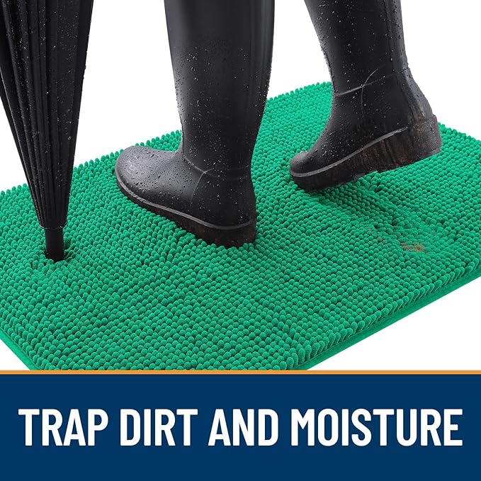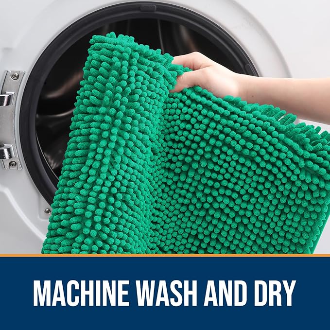 OLANLY Dog Door Mat for Muddy Paws 30x20, Absorbs Moisture and Dirt, Absorbent Non-Slip Washable Doormat, Quick Dry Chenille Mud Mat, Entry Indoor Entryway Carpet for Inside Floor, Emerald Green