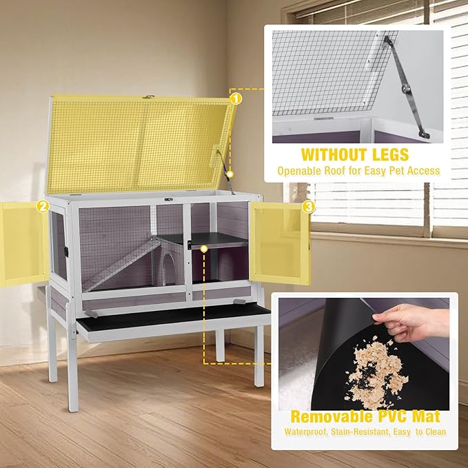 - 2-in-1 Multi-Level Design: Features distinct sleeping, dining, bathroom, and play areas. Spacious second floor (36.6"L x 19.6"W) provides ample room for 1 rabbit and 1-2 small pets.