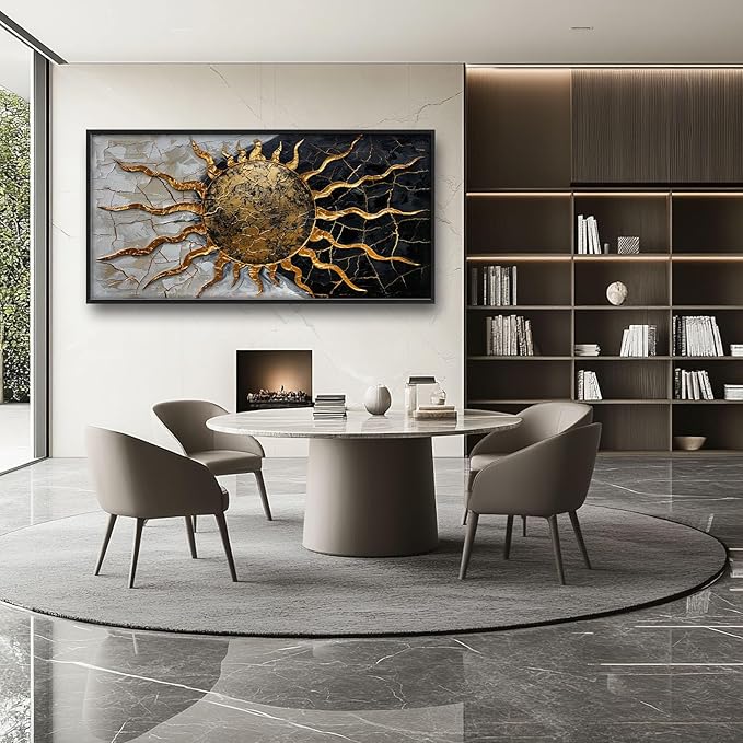 Quorin Golden Sun Large Wall Art Abstract Day and Night Pictures Black and Golden Wall Decor Canvas Print Painting Artwork for Bathroom Living Room Bedroom 60L x 30W