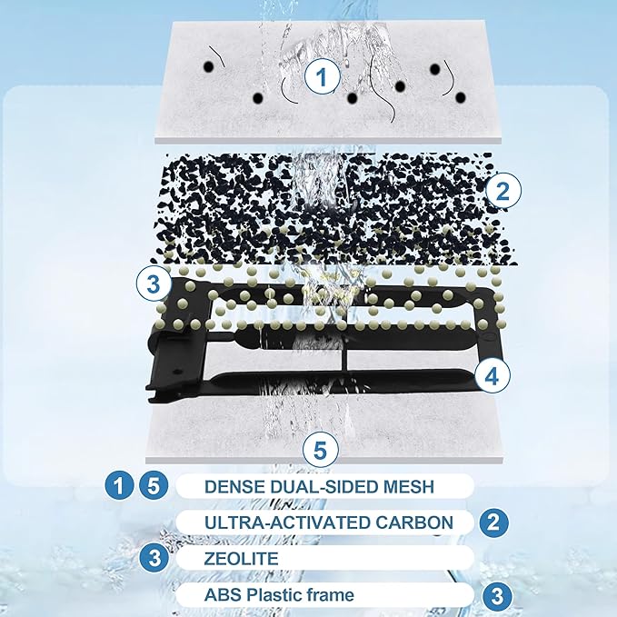 - Powerful Filtration: Dual-Sided Dense Mesh, 50% more Ultra-Activated carbon and zeolites. Our innovative dense dual-sided mesh traps debris, food particles, and waste; Ultra-activated carbon for longer-lasting, thorough filtration; zeolite filter media helps maintain the water's pH balance.