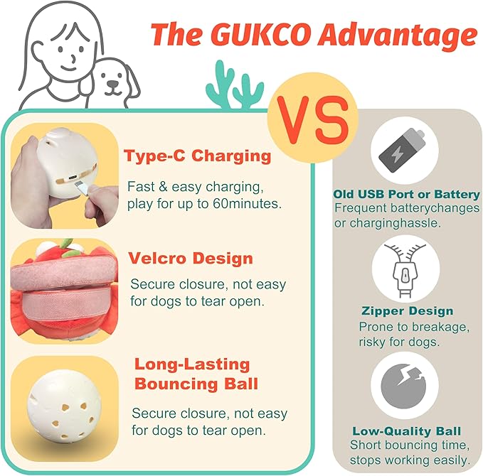 - Rechargeable Interactive Dog Toys: Built-in rechargeable battery eliminates the need for frequent battery replacements, making these squeaky dog toys a more sustainable choice. The plush chew dog toys provide hours of playtime on a single charge, offering a reliable self-play option to keep your dog active and entertained.