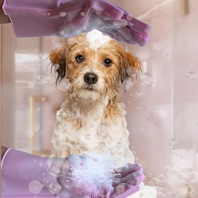 Grooming Gloves for Cats & Dogs - Pet Hair Removal Glove, Silicone Brush for Dog or Cat Washing, Puppy Bath Supplies for Shedding Cleaning Bathing & Massage, Fur Remover Mitt, Shower Shampoo Scrub
