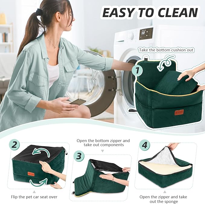 - Multi-functional Use: The small dog car seat is not only suitable for vehicles, but can also be used as a dog bed at home, outdoors or in a tent, providing your dog with a comfortable resting space anwhere. It has a removable and washable cover, simply open the zipper and take out the sponge to clean the cover. Please note that the inner sponge is not washable
