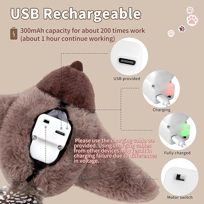 - Rechargeable: Rechargeable cat toy for indoor cats has long-lasting life, comes with a charging cable, no need to repurchase frequently. Battery capacity for about 200 times work(about 1 hour continue working).