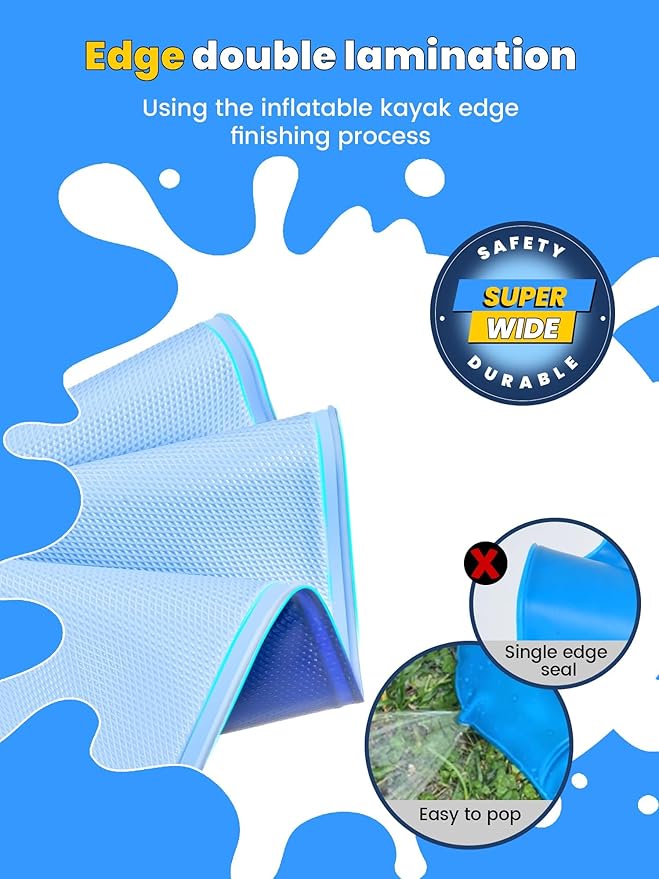 - NON-SLIP DESIGN: When playing with water on splash mat, 4-8 ages children are easy to fall and be injured. The non-slip texture is designed to increase grip and allow children to enjoy the water Sprinkler in the backyard while ensuring safety.