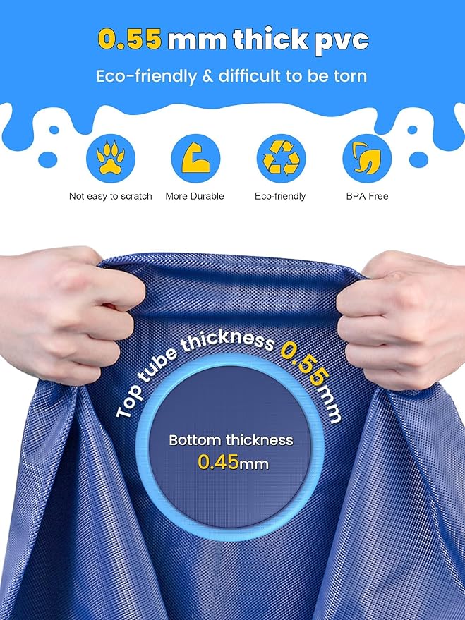 - MORE THICKNER MORE DURABLE: The dog splash pad is 0.55MM, which is thicker and more durable than other 0.25mm splash pads, so pets dog and children can play on it without worrying about being damaged by the paws of the pet. Tip: Pets need to trim their nails first when playing water mat.