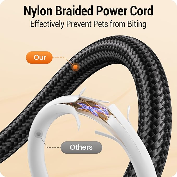 - Dual Power Supply : The auto cat feeder has two power supply systems. DC 5V power adapter for daily use of the dog feeder. The 3 D cell batteries (no included) ensure your pet has a continuous supply of food when your home loses power. You can enjoy your vacation or work away from home with peace of mind. ( Dual power supply recommended )