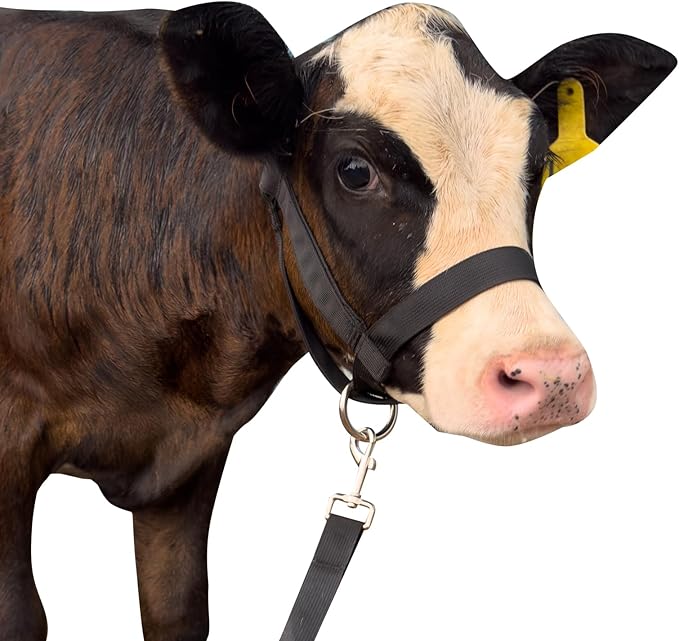XUANNIAO Easily Adjustable Figure 8 Cow Halter, Double-Ply Premium Livestock Cattle Halters, Colorful Cow Utility Calf Halter with Leading Rope for Miniature Horse Donkey Goat Foal (Medium, Black)