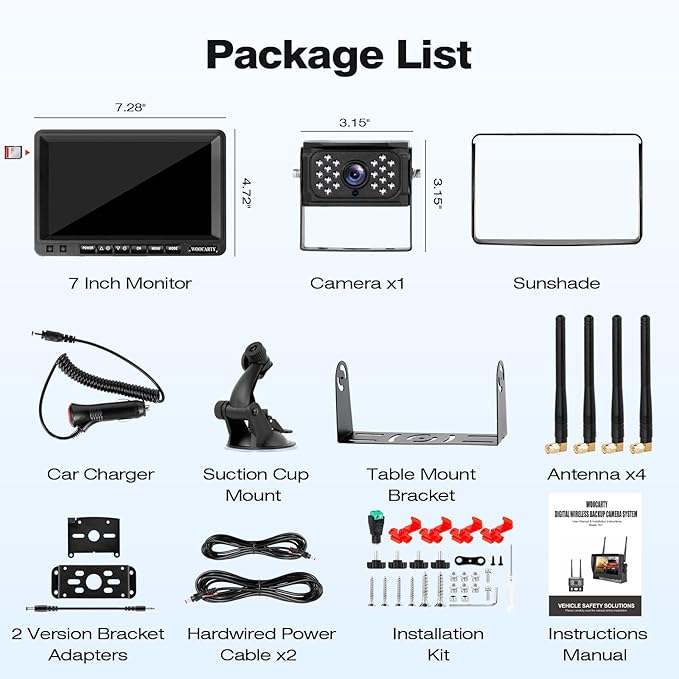 - Stable Wireless Signal: This wireless RV backup camera adopts 2.4-GHz communication system to give you a reliable digital connection, no worry about lag or disruptions. Dual antennas design with enhanced stability. The signal can reach 500ft in open area without barrier and working on vehicle range under 164ft.