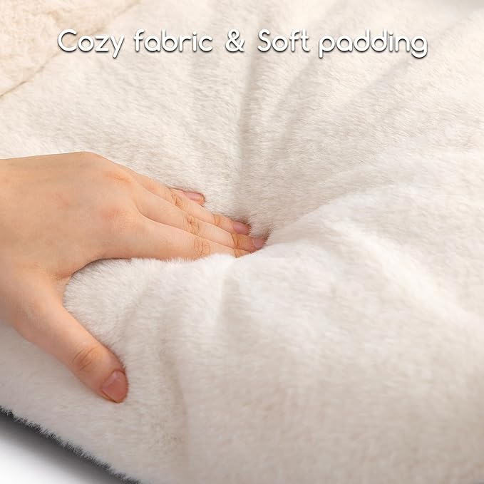 Hollypet Fluffy Plush Dog Cat Pet Couch Soft Calming Sofa Bed for Medium Small Cats and Dogs, Beige