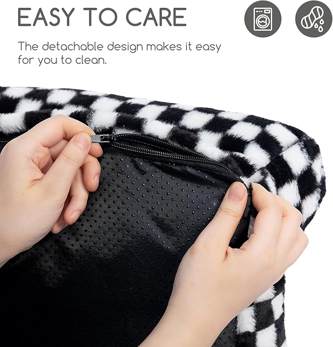 Hollypet Fluffy Plush Dog Cat Pet Couch Soft Calming Sofa Bed for Medium Small Cats and Dogs, Black and White